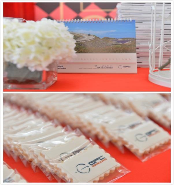 签到入口处放置着为员工精心准备的2017 GFC台历以及带有公司Logo的饼干。